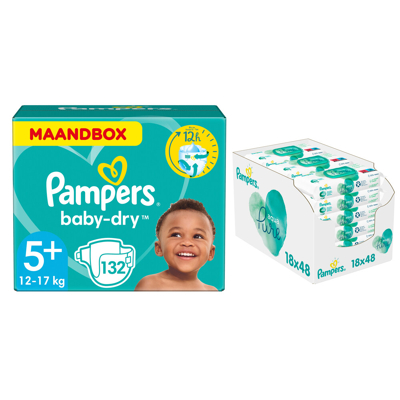 Pampers® Pampers Baby Dry Maandbox Maat 5+ 132 Luiers En Aqua Pure 864 Billendoekjes Pakket