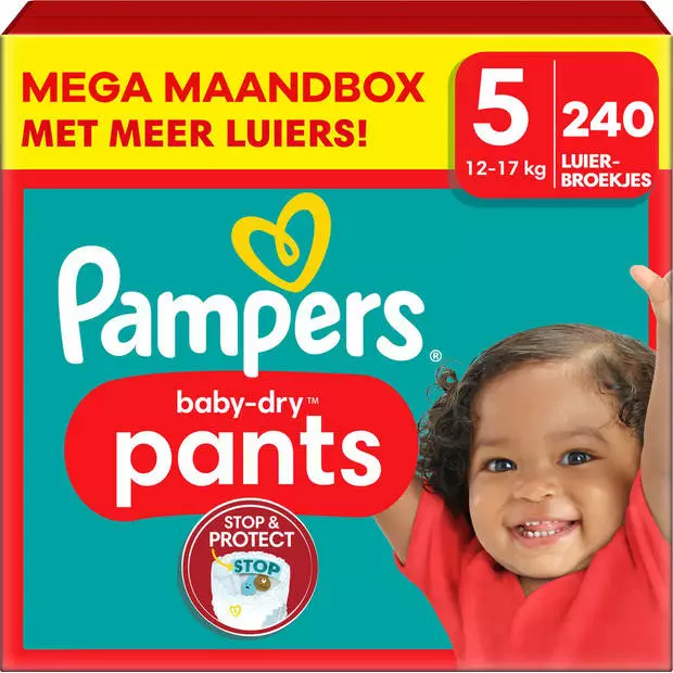 Pampers Baby-Dry Pants luierbroekjes bieden tot 12 uur rondom bescherming tegen lekken dankzij de combinatie van de revolutionaire Stop & Protect Pocket en een 360° pasvorm. Ze hebben bovendien een superabsorberende kern die vocht onmiddellijk absorbeert en beschermrandjes die lekken rondom de beentjes helpen voorkomen. Wanneer je baby tijdens het verschonen begint te wriemelen, zijn de Pampers Baby-Dry Pants luierbroekjes eenvoudig om te verschonen: dankzij hun flexibele tailleband trek je ze in één beweging aan. Je scheurt de zijkanten open om ze uit te trekken, rolt ze op en plakt ze dicht met de plakstrip om ze weg te gooien. Net zoals bij jou, komt jouw baby’s veiligheid bij Pampers op de eerste plaats: Pampers Baby-Dry Pants luierbroekjes zijn dermatologisch getest en bevatten 0% EU-parfumallergenen (zoals gereglementeerd in de regelgeving voor cosmetica nr. 1223/2009). Ze zijn goedgekeurd door de dermatologen van de Skin Health Alliance en getest en gecertificeerd conform het label Standard 100 van Oeko-Tex.