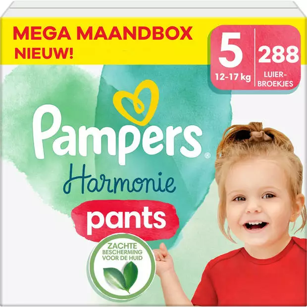 Tot 100% droogheid van Pampers en plantaardige bestanddelen. Pampers Harmonie Pants zijn gemaakt met hoogwaardig katoen (buitenlaag bevat 15% katoen) en zachte plantaardige materialen, ze zijn hypoallergeen, dermatologisch getest en zacht voor de huid van je baby. 50% van de absorberende kern bestaat uit massabalans gecertificeerde biologische grondstoffen*. Ze bevatten geen parfum of lotion en garanderen tot 12 uur droogheid van Pampers, zodat elke ouder kan rekenen op de vertrouwde Pampers kwaliteit. Dankzij hun rekbare tailleband rondom zijn ze gemakkelijk te verwisselen, zelfs als je baby niet wil stilliggen. Ze hebben schattige prints en een handige Pampers urine-indicator: jij en je baby zullen er dol op zijn. Deze luierbroekjes worden ook gemaakt met verantwoord geproduceerde cellulose en zijn gecertificeerd door het onafhankelijk label Standard 100 van Oeko-Tex, een van de meest veeleisende certificeringen ter wereld.