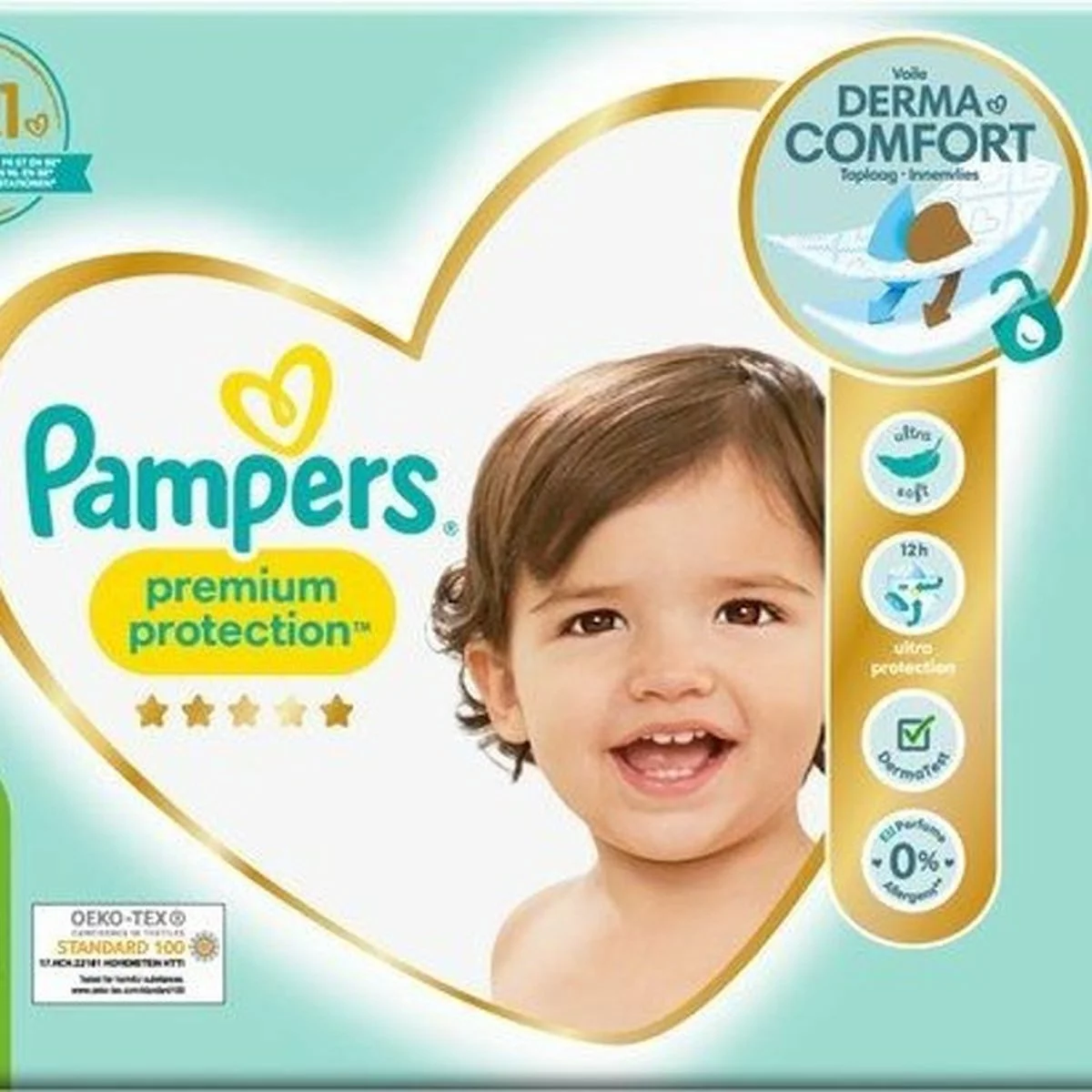 Pampers Premium Protection luiers, zijn de N°1 in Nederlandse kraamafdelingen*, en zijn 100% veilig voor de huid van je baby: ze zijn dermatologisch getest en bevatten geen van de 26 EU parfumallergenen.