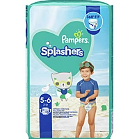 zwemmen nog leuker.* Pampers Splashers wegwerpbare zwemluiers: ontworpen voor waterpret bij het zwembad, strand of waterpark* Zwellen niet op in water zoals gewone luiers zodat ze een comfortabele pasvorm hebben, nat of droog* Dubbele beschermrandjes sluiten goed aan rond de beentjes van je baby om lekken te voorkomen* 360º rekbare tailleband zorgt voor volledige flexibiliteit zodat het past als een gewoon zwembroekje* Gemakkelijk los te scheuren zijkanten om snel en eenvoudig uit te trekken* Dankzij de leuke watermotiefjes zien ze er als echte zwembroekjes uitGebruik Pampers Splashers Zwemluiers altijd in combinatie met Pampers billendoekjes