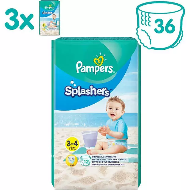 Jouw baby kan heerlijk spetteren in het water met Pampers Splashers wegwerpbare zwemluiers. In tegenstelling tot gewone luiers, zwellen Pampers Splashers niet op in water, en bieden je baby een comfortabele pasvorm of ze nu nat zijn of droog. De dubbele beschermrandjes sluiten goed aan rond de beentjes van je baby voor een optimale bescherming en het voorkomen van lekjes.